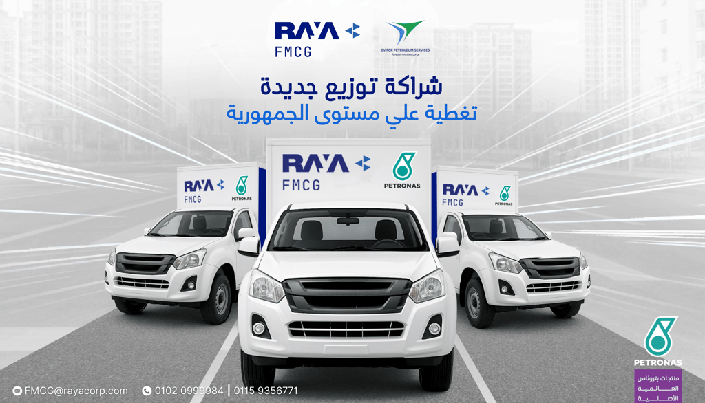 تعلن راية إف إم سي جي عن شراكتها مع شركة إي في للخدمات البترولية، إحدي شركات أبو غالي موتورز، المصنع و الموزع الرسمي و المعتمد لزيوت بتروناس العالمية، الرائدة عالميًا في مجال الطاقة وزيوت التشحيم. وبموجب هذه الاتفاقية، تقوم راية إف إم سي جس بالتوزيع على مستوى الجمهورية لمنتجات بتروناس العالمية في مصر و التي توفرها شركة أي في، مما يعزز مكانتها كشريك موثوق للعلامات التجارية العالمية.