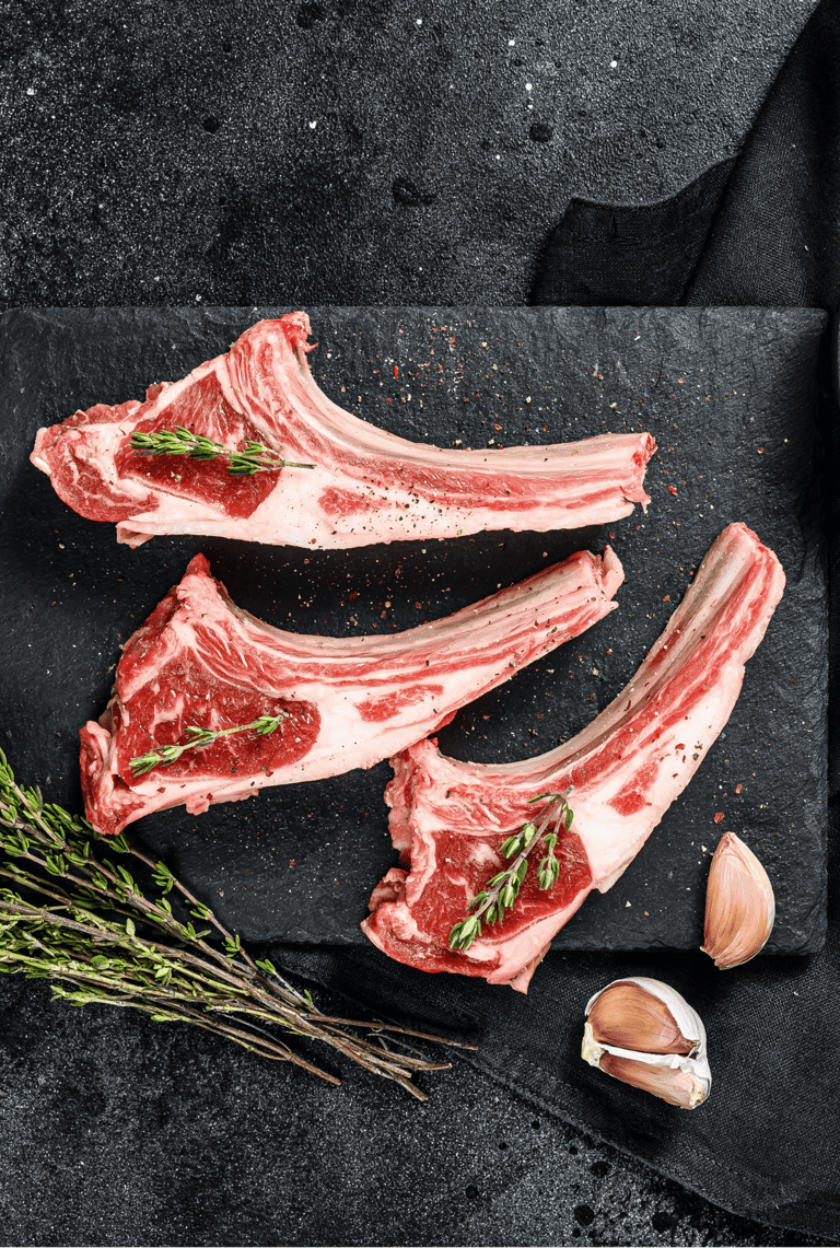 Lamb Rack – Tender, premium cut from the rib section, ideal for roasting or grilling, with delicate flavor and elegant presentation.
